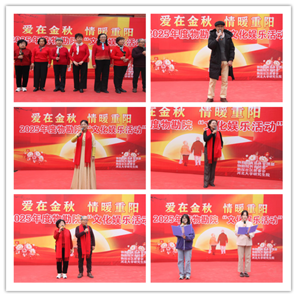 金风送爽,菊韵流芳。为进一步弘扬中华传统文化中尊老、敬老、孝老、爱老的传统美德。10月29日,物勘院离退休管理部、团委联合驻地社区居委会、河北大学研究生院共同组织开展“爱在金秋 情暖重阳”主题文化活动,邀请离退休职工近200人,共度重阳佳节。